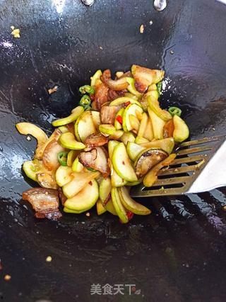 锅中留少许油,放入蒜末、姜末爆香,再加入切好的瓠子瓜片翻炒。瓠子瓜炒至断生后,将炒好的肉片重新放入锅中,加入适量的盐、鸡精调味,翻炒均匀即可出锅。这样一道色香味俱全的瓠子瓜炒肉就完成了!
